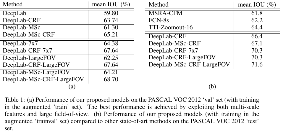 MS와 LargeFOV를 사용한 알고리즘이 가장 성능이 좋음을 알 수 있다.
