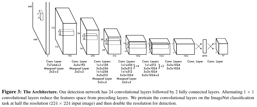 YOLO의 구체적인 네트워크 아키텍처는 아래와 같다.
