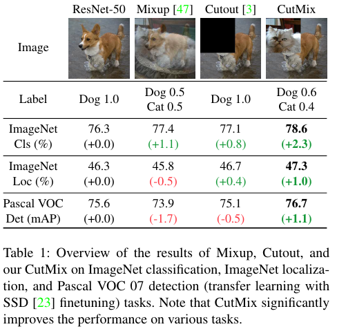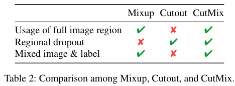 CutMix 방법은 Table 1에 나와있는데 굉장히 직관적이다.