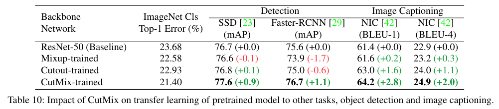 Table 12를 보면 CutMix가 가장 좋은 성능임을 알 수 있다.