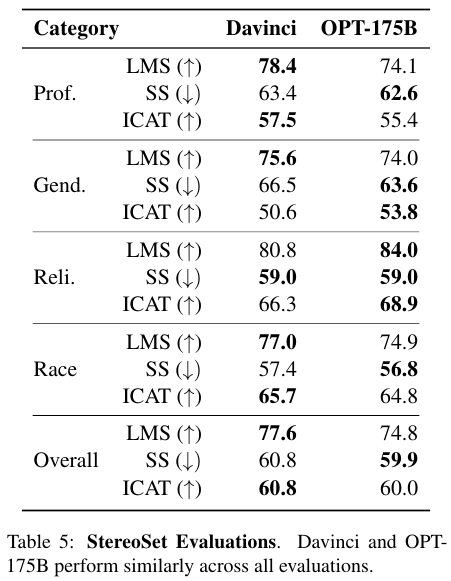 OPT는 Davinci에 비해서 좋은 성능을 보이지만 보다 toxic한 언어 프롬프트에 대해서 toxic한 답변을 더 잘 생성하는 경향을 보이는 단점이 존재한다. 이는 RealToxicityPrompts 데이터 셋을 사용해서 평가했다.