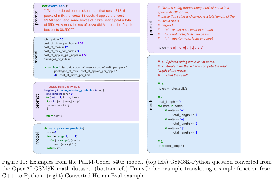 코드에 대해서 추가적으로 파인튜닝한 PaLM-Coder도 소개한다.