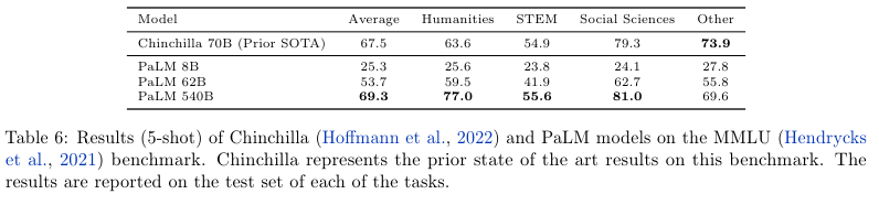 사람과 Prior SOTA인 GPT-3 175B 1-shot, Gopher 5-shot, Chinchilla 5-shot과 PaLM 5-shot을 비교했다.