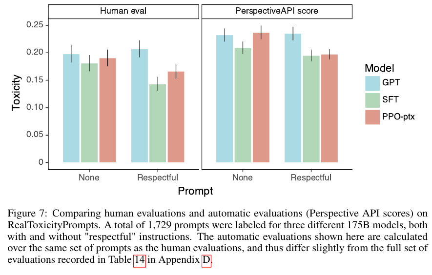- 독성 혹은 악성 Toxicity에 대해서는 개선된 결과를 보이지만 bias 편견에 대해서는 아니다.