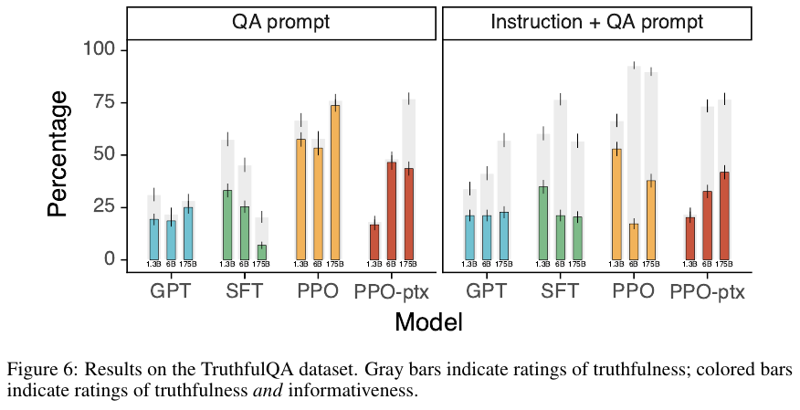 - Truthfulness 진실성에서 GPT-3 보다 개선된 결과를 보인다.