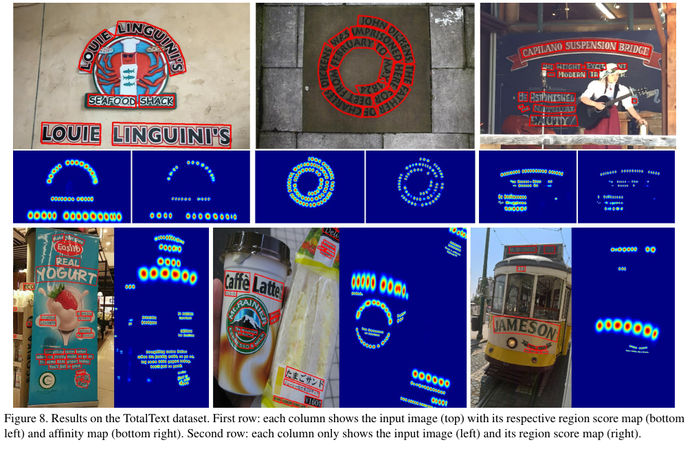 Figure 8은 TotalText 데이터에 CRAFT 방법을 적용한 결과의 예시다.