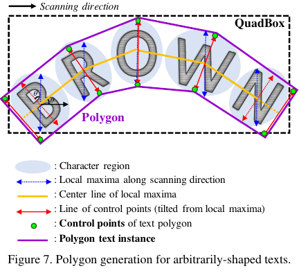 대신 전체 문자에 대한 추가적인 polygon을 생성하여 curved texts에 대응한다.
