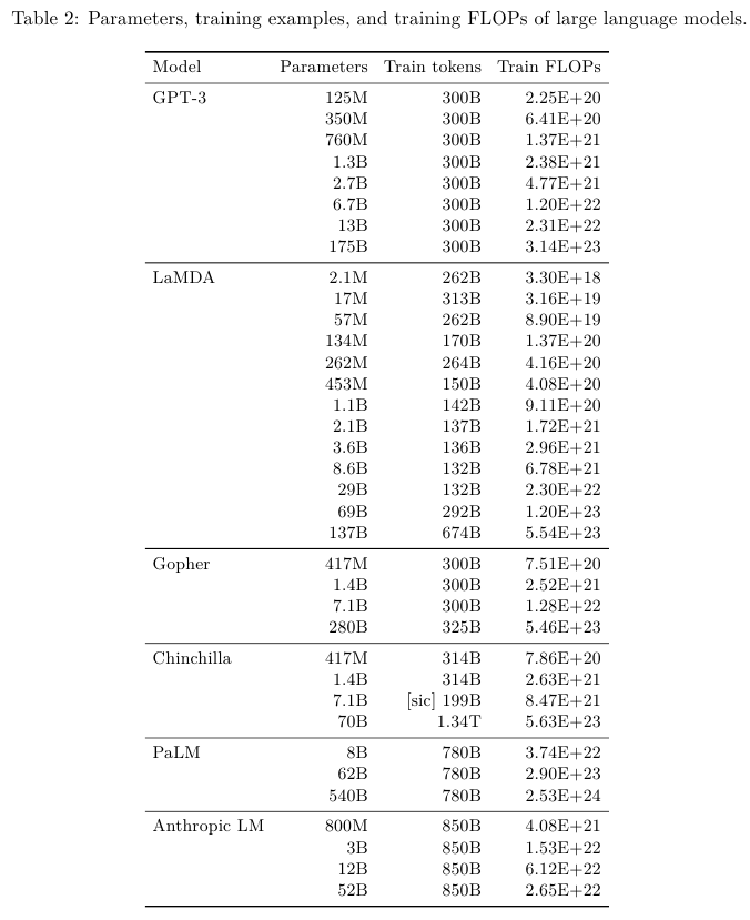 Table 2에서는 모델 사이즈와 학습 FLOPs 그리고 학습 데이터의 토큰 수까지 포함해서 보여준다.