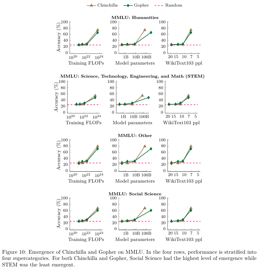 전반적으로 학습 FLOPs가 10^22 에서 accuracy가 폭발적으로 증가함을 알 수 있다.