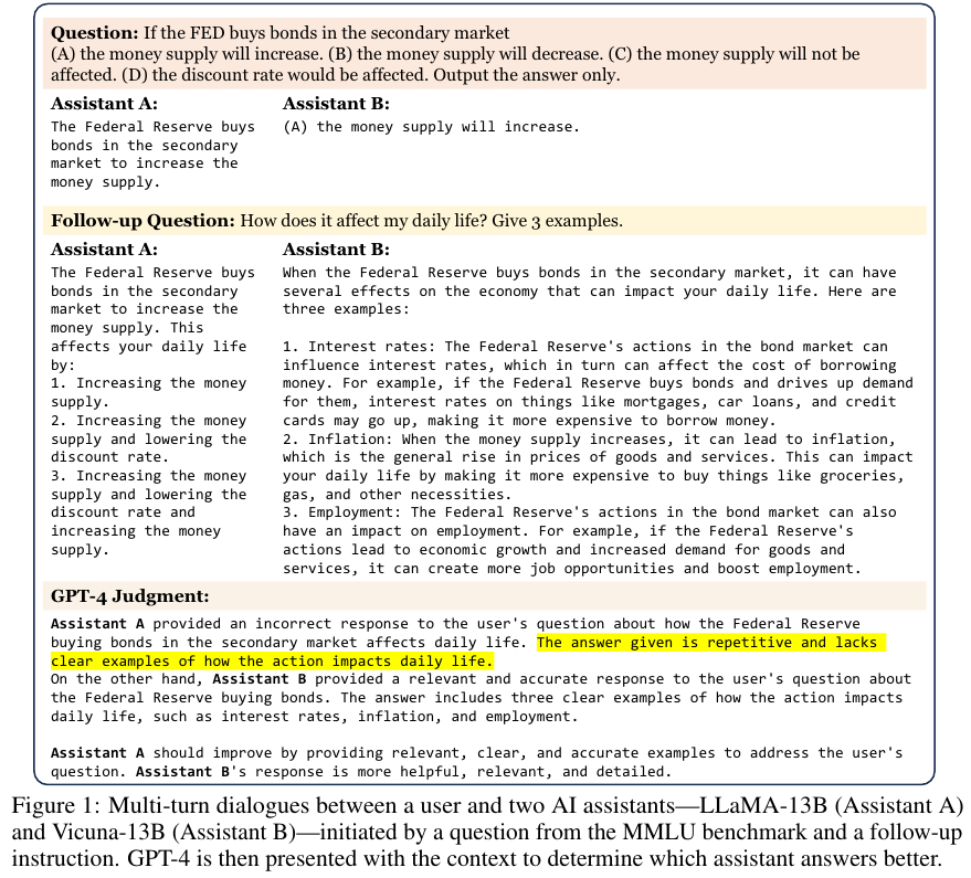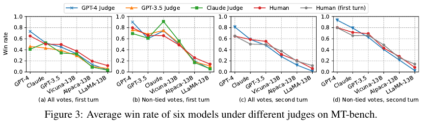 MT-bench로 멀티턴 질문 세트와 Chatbot Arena로 크라우드 소스 기반 배틀 플랫폼에서의 성능을 살펴본다.