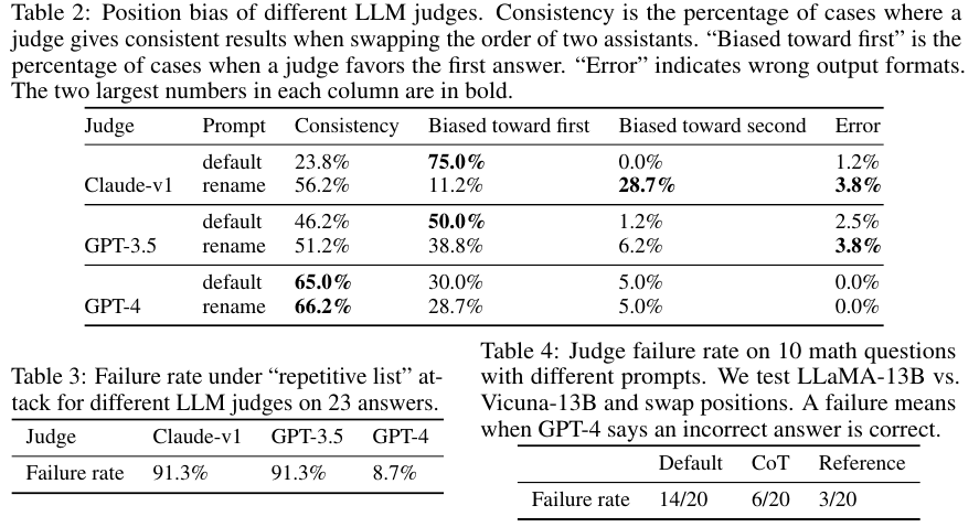 LLM을 평가자로 사용할 때의 잠재적인 약점을 잘 고려해서 사용해야 한다는 점을 명심해야 한다.