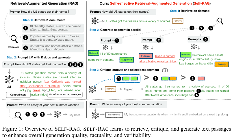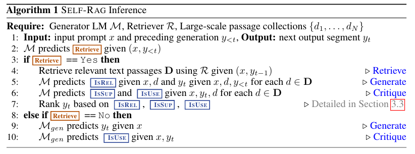 Self-RAG: Learning to Retrieve, Generate, and Critique through Self-Reflection 논문이다. (링크)