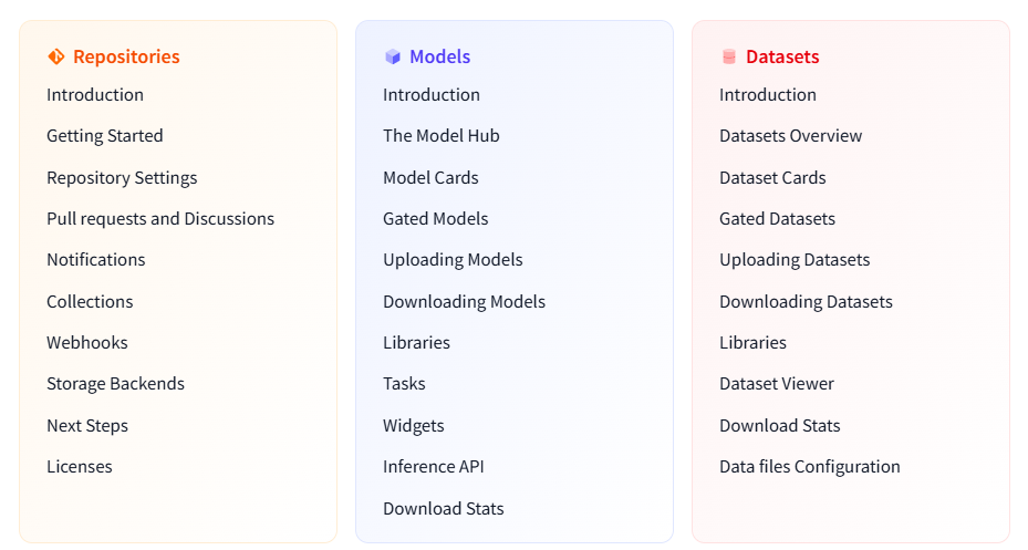 Models, Datasets, Spaces를 하나씩 살펴본다.