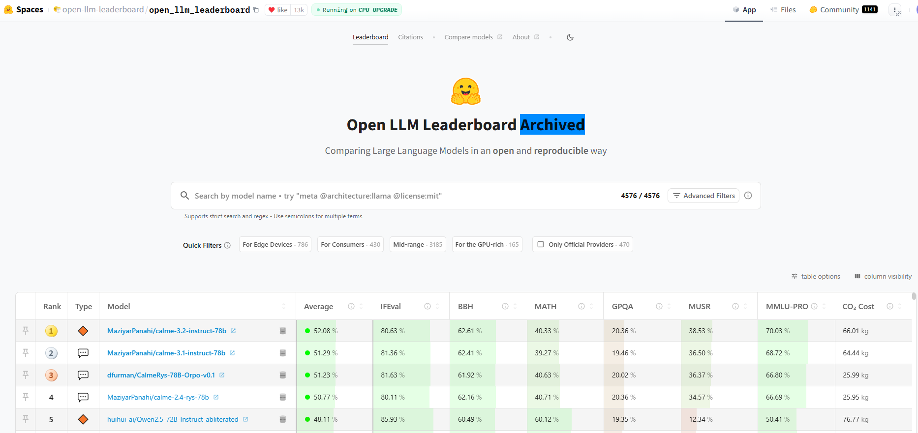 Open LLM Leaderboard 역시 Spaces에서 접근할 수 있다.
