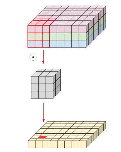 반면에 depthwise conv는 개별 channel (depth)의 값들을 가지고 컨볼루션을 계산한다.