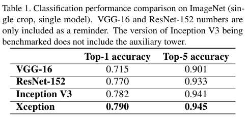 ImageNet에 대해서 Xception이 SOTA를 달성했음을 확인할 수 있다.