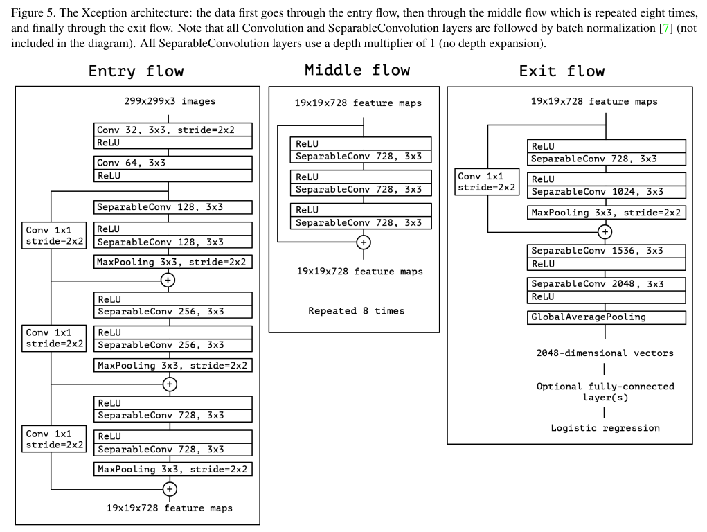 Xception의 논문 이름은 Xception: Deep Learning with Depthwise Separable Convolutions다. (링크)