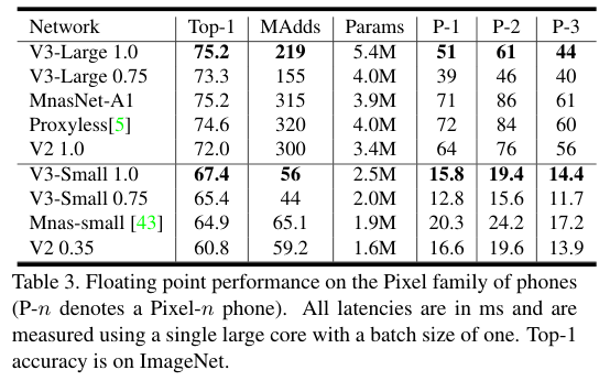 MobileNet V3가 V2 보다는 확실히 더 개선되었으며, ESPetv2, CCC2, ESPNetv1에 비해서 더 좋은 성능을 달성했음을 확인할 수 있다.
