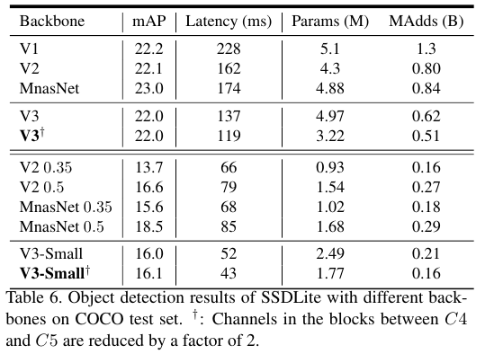 MobileNet의 V2보다 V3를 적용한 SSDLite가 더 좋은 성능임을 알 수 있다.