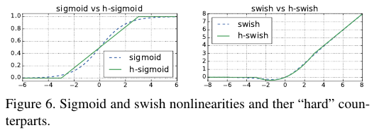 기존에는 Squeeze and excitation과 swish nonlineary를 사용한다. 하지만 Swish는 fixed point 사칙연산에서 정확도를 유지하는게 어려우므로 이를 hard sigmoid로 대체한다.