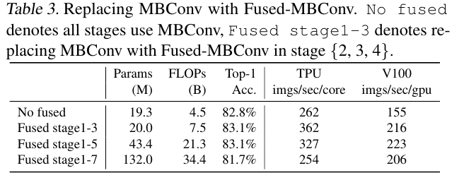 저자들은 EfficientNet-B4를 기반으로 하여 MBConv를 서서히 Fused MBConv로 대체한다.