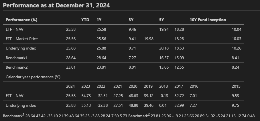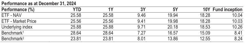 'year performance (%) ETF - NAV Underlying index Benchmark1 Benchmark2 2024 '