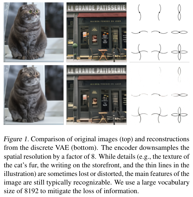 dVAE를 통한 압축 결과는 아래 Figure 1에 나와있는데 품질의 열화가 심하지 않다.
