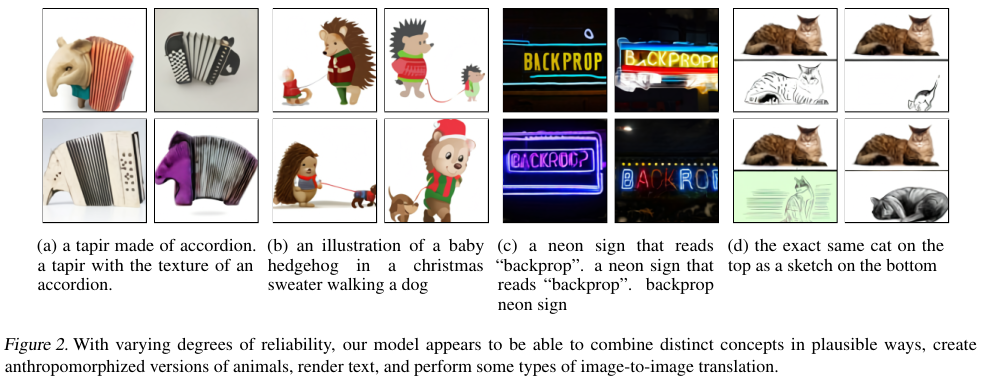 Figure 2에서는 DALL-E 모델의 zero-shot의 예시를 보여준다.