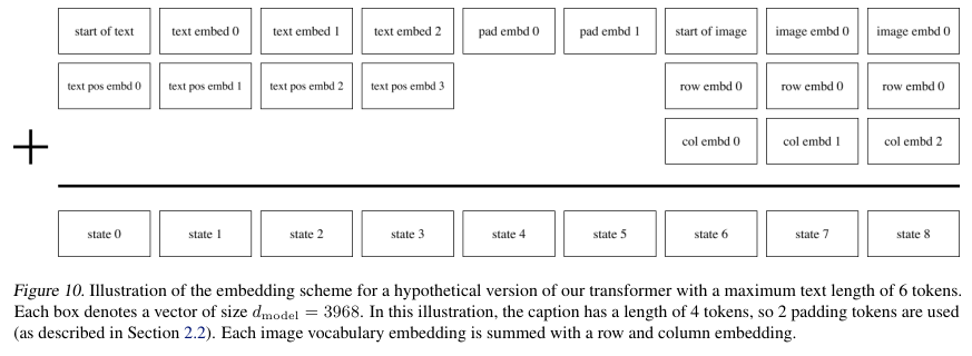 Images $x$, captions $y$, tokens for the encoded RGB image $z$에 대한 joint dist는 다음과 같이 정의한다.