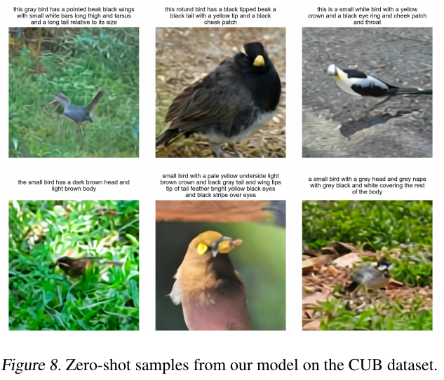 Figure 3과 8은 DALL-E 모델의 생성 결과고 Figure 7은 DF-GAN과 DALL-E의 생성에 대한 사람의 평가 결과다.