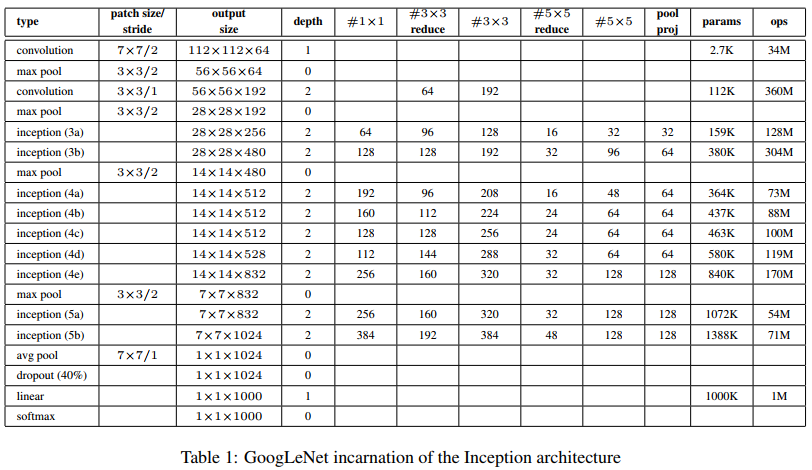 5x5 reduce(5x5의 앞에 적용되는 1x1)은 16, 5x5은 32, max pool(pool proj)은 32다.
