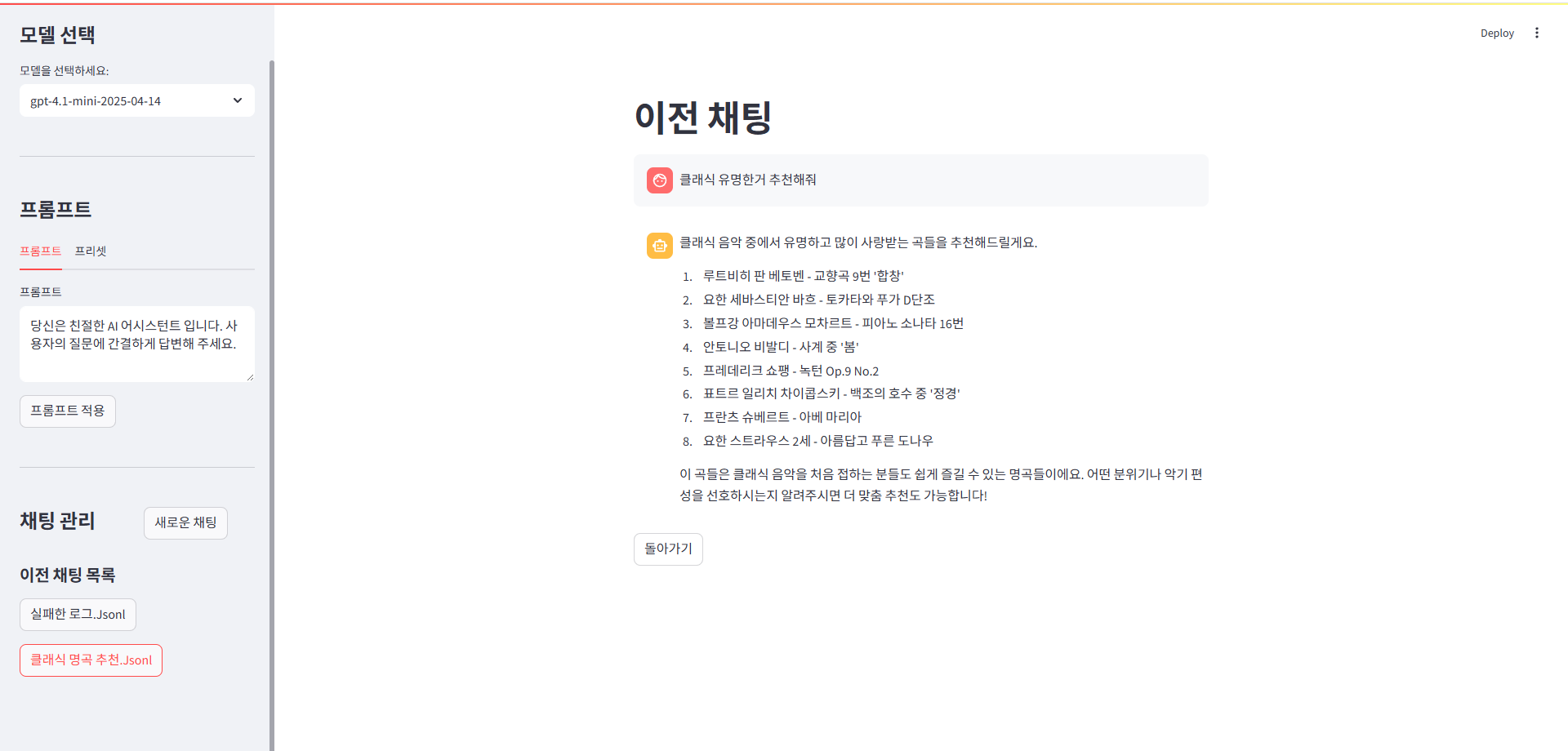 - LLM을 활용해서 직접 곡이나 가수, 앨범을 추천하는 챗봇을 만든다.