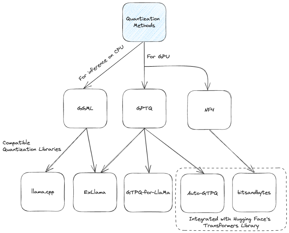 https://medium.com/@siddharth.vij10/llm-quantization-gptq-qat-awq-gguf-ggml-ptq-2e172cd1b3b5