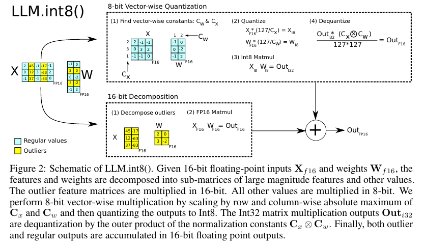 LLM.int8(): 8-bit Matrix Multiplication for Transformers at Scale 논문 (링크)의 방식을 따라서 outlier가 있는 경우에는 그 값만을 FP16의 형식으로 반환한다.