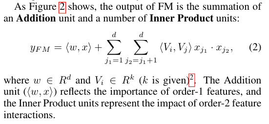 Equation (2)에 나와있듯이 여러개의 features의 관계를 FM을 통해서 모두 학습한다.