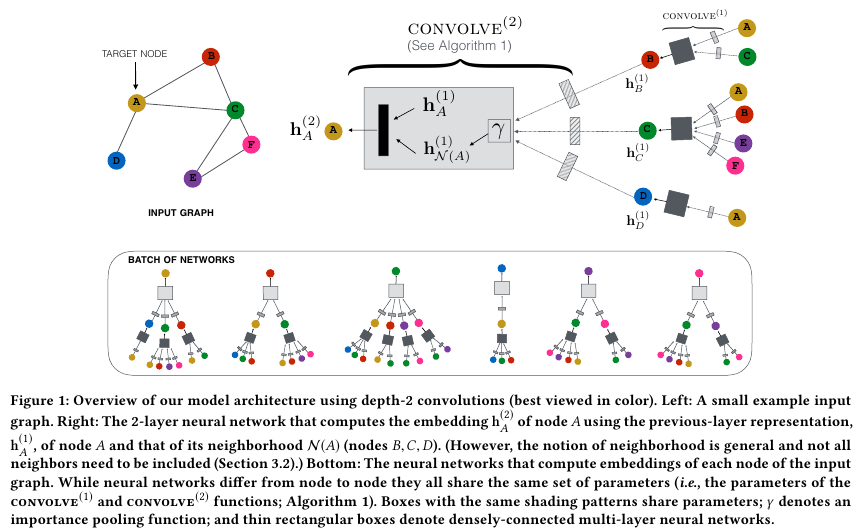이때 모든 k-hop의 노드들을 사용하는게 아니라 Pixie: A System for Recommending 3+ Billion Items to 200+ Million Users in Real-Time.논문에서 제시한 바와 같이 Random walk를 통해서 얻은 noralized visit counts가 가장 큰 top $T$개의 노드만을 사용한다. (k-hop이란, 연결된 링크의 수가 k인 이웃 노드를 의미한다. 예를 들어서 a - b, b - c, c - d로 연결되어있다면 a와 b는 1-hop, a와 b는 2-hop, a와 d는 3-hop이다.)