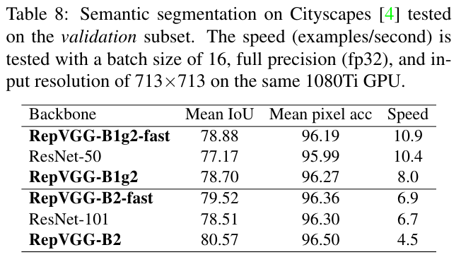 - RepVGG가 image classification과 semantic segmentation에서 효율적이며 구현에 있어서도 효율적이고 쉬움을 보인다.