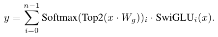 MoE의 Top-2 결과에 대해서는 아래의 gating 연산을 적용한다. SwiGLU를 적용한다.