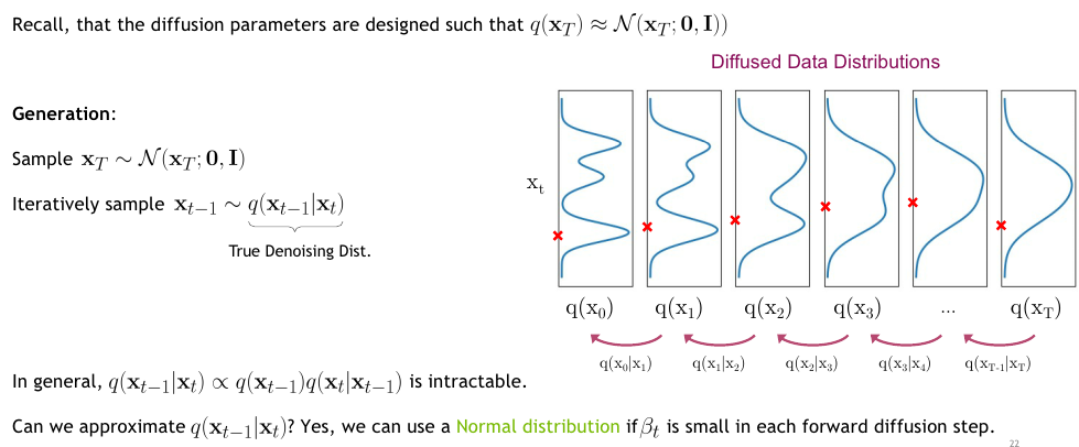 Figure 4와 Figure 5은 위 수식을 더 자세히 설명한 슬라이드다. 위에서 언급된 $\beta_t$를 작은 상수값으로, 매 스텝마다 다른 값을 가질 수도 있지만, 학습 가능한 값이 아닌 고정된 상수다. 즉 매 스텝마다 어떤 값을 갖는다고 정해지면 그 값을 모든 학습 step 혹은 학습 epoch마다 동일하다.
