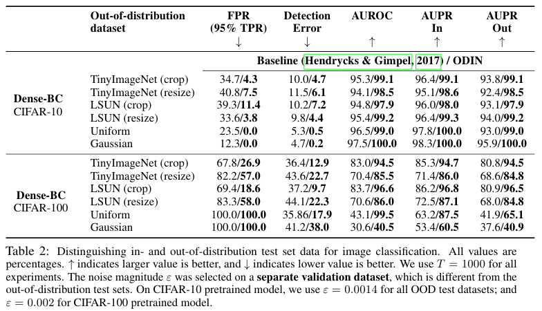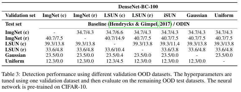 Table 2와 3을 보면, ODIN이 기존의 방법 보다 더 나은 OOD 성능을 달성했음을 확인할 수 있다.