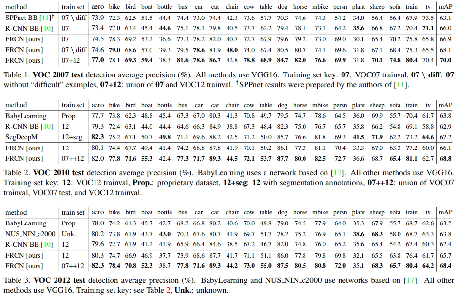 Table 1부터 3까지는 Pascal VOC 2007, 2010, 2012에 대한 실험 결과다. 유의미한 성능 향상이 있었음을 알 수 있다.