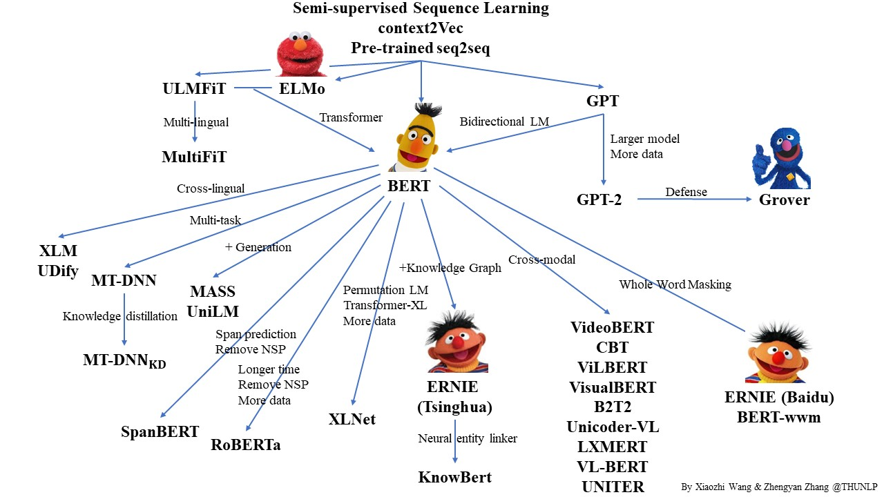 BERT를 중심으로 연관된 여러 Sequence to Sequence Model의 관계도입니다.