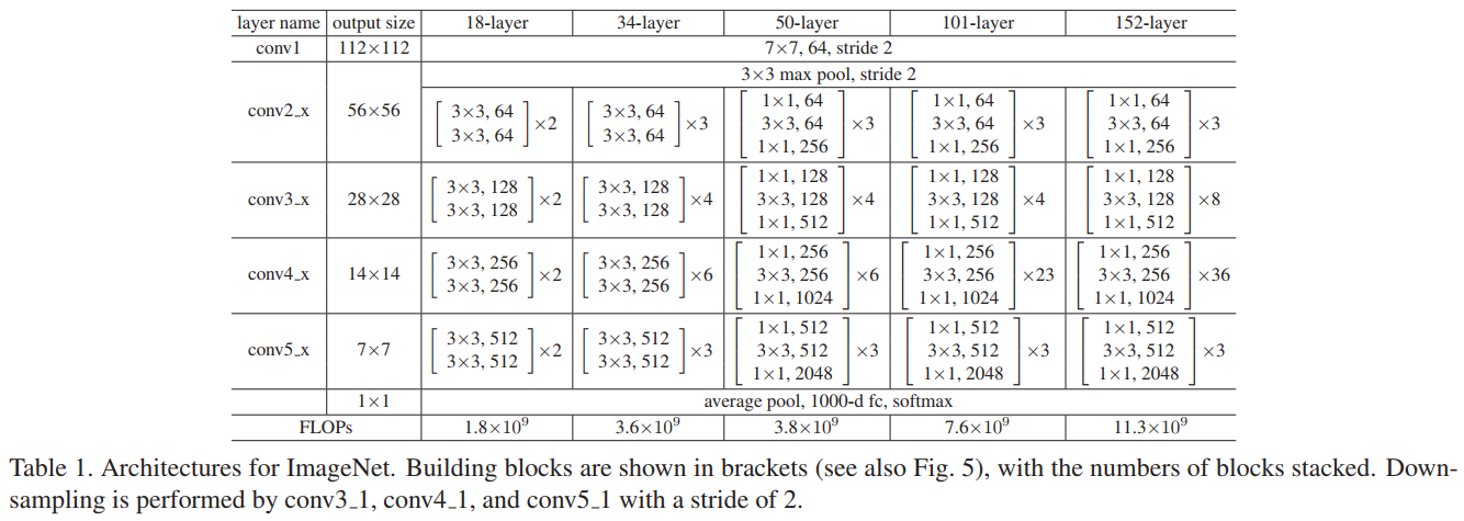ResNet 구조는 여러가지인데 18, 34, 50, 101, 152 layers다.