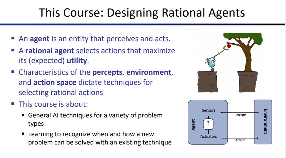 Agent는 사람처럼 사고한다. Environment (외부환경)을 지각하고 이 정보를 활용하여 판단한 후 action을 취한다.