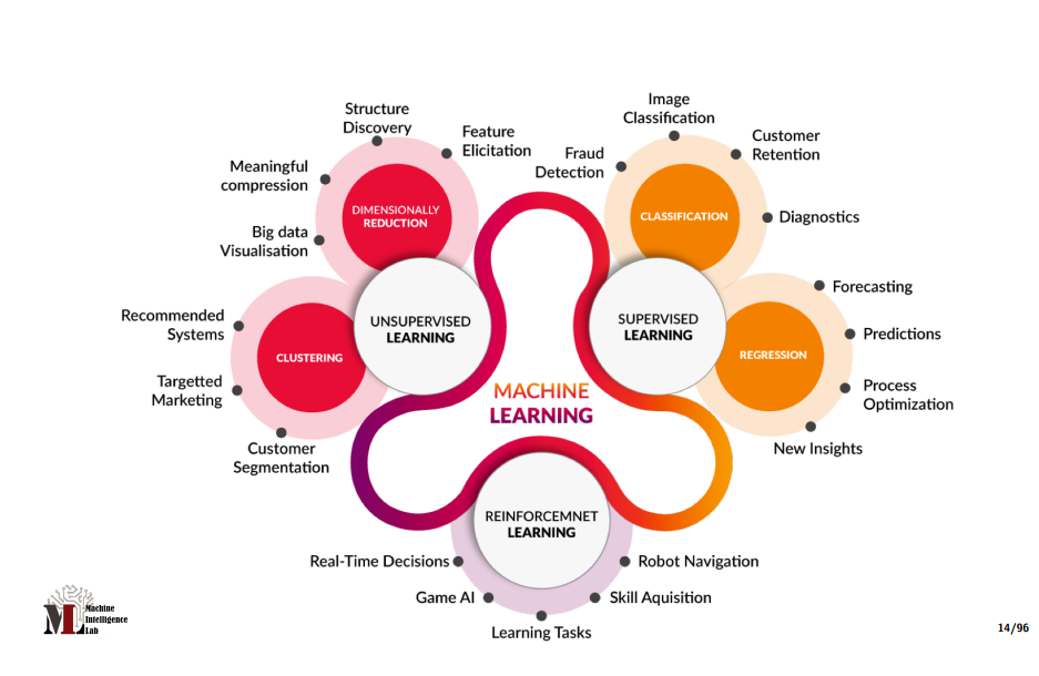 위 그림들을 보면 Game AI, 추천 시스템, 시장 예측, 의료 진단, 고객 세그멘테이션, 이상치 탐지 등등 다양한 분야에서 활용가능함을 알 수 있다.