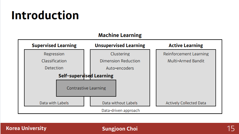 머신러닝은 크게 Supervised Learning, Unsupervised Learning, Reinforcement Learning으로 나눌 수 있고, 최근에는 Semi-Supervised Learning이 많이 연구되고 사용되고 있다.